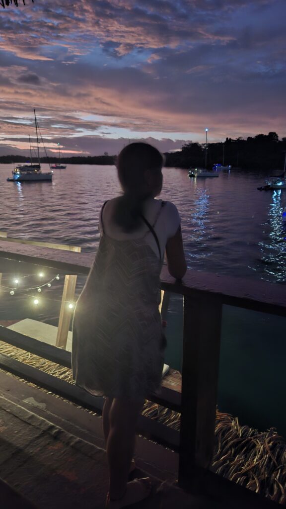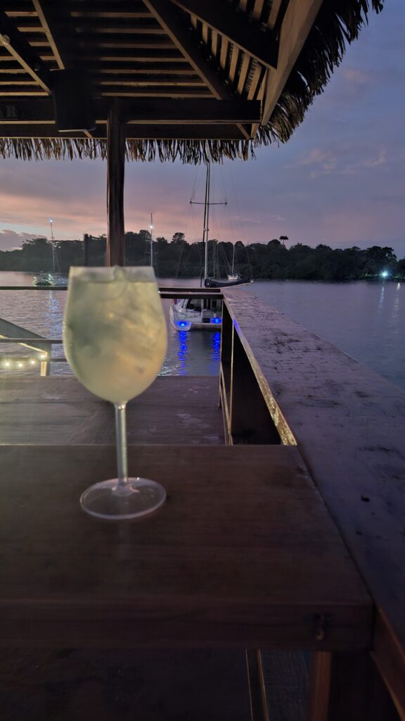 We checked in in the main village in Isla Colon, nothing too special, but it is the only place where there are shops, so we bunkered for some weeks. It is still very warm and humid, so the floating bar in the middle of the anchorage was a good place to see the sunset after a day’s work and shopping.