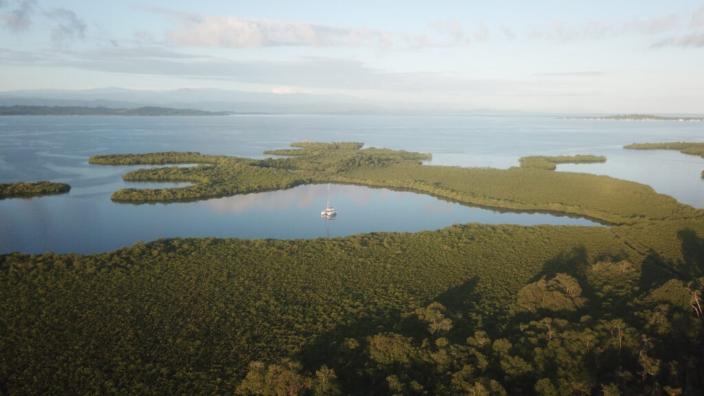 The whole area of Bocas del Toro consists of hundreds of bigger and smaller islands, many of them made up by mangroves where it is easy to find a quiet protected anchorspot.